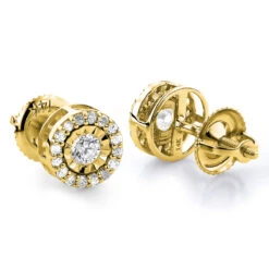 Men’s Diamond Cluster Earring 14K Yellow Gold 0.69ct Single Stud