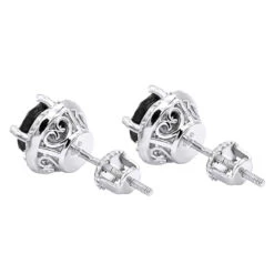 Real Black Diamond Stud Earrings Sterling Silver Square Kites 0.1ct