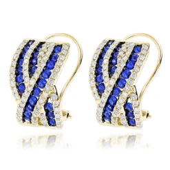 Unique Designer Blue Sapphire And Diamond Drop Earrings For Women 18K White Gold