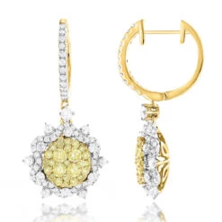 Unique Diamond Hoop Earrings Large Black Diamond Huggies 14K Yellow Gold 3ct