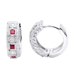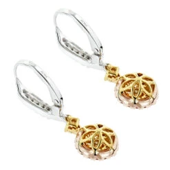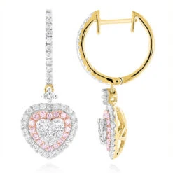 Unique Luxurman Drop Earrings White & Pink Diamond Heart Earrings 14K White Gold